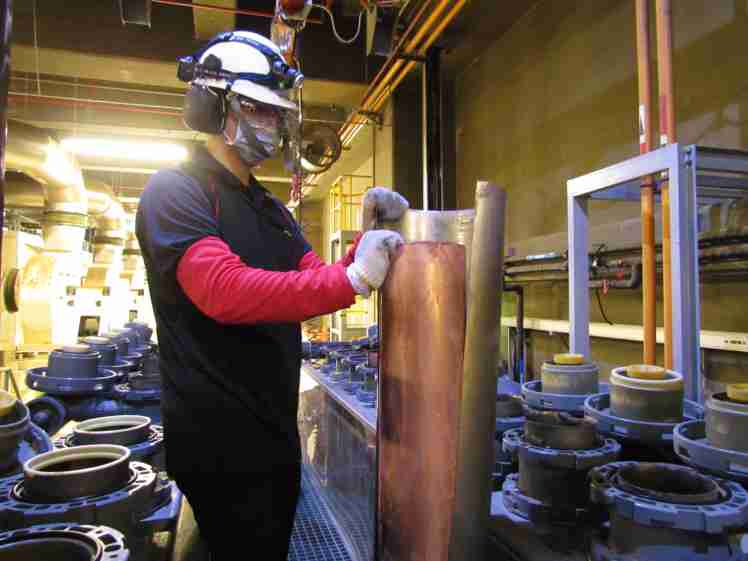 蓝狮在线将废弃物转化成有效的工业或民生原物料,,,,图为废铜液淬炼后再制成纯度极高的铜管