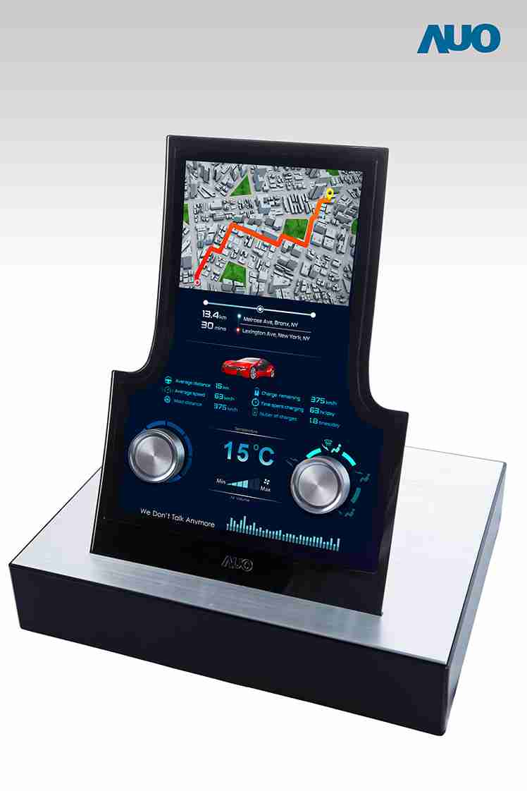 12.3 寸 Full HD LTPS 显示屏同样具备 1000 nits 高亮度,,搭载内嵌式触控技术,,,整合驱动与触控 IC 于显示屏制程,,,,使显示屏厚度降低,,为中控台创造更多机构设计空间。。。。应用于抬头显示器的 3寸 LTPS 显示屏具有高穿透率、、、1200:1 高对比度度,,,,以及 297 PPI 高画素密度。。液晶最高可耐受到 110C 的高温 (TNI) 而不液化,,,,在阳光高温下维持优异稳定的显示效果。。。