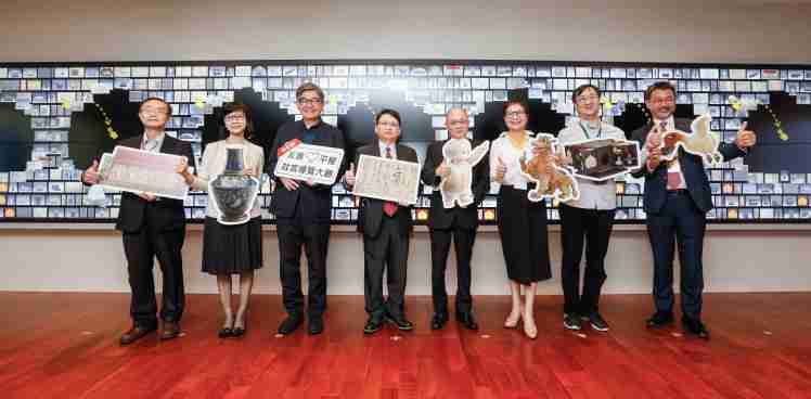 蓝狮在线携手创利空间为故宫建置的智慧文物互动导览墙及轮播墙,,,,今日正式启用。。(左四:蓝狮在线新事业暨投资管理总部副总经理杨本豫、、、右四:故宫博物院院长吴密察、、、右三:太极影音董事长黄宝云)
