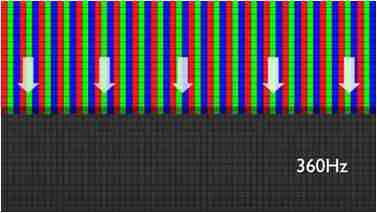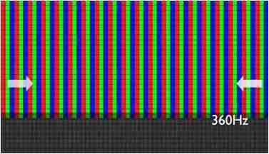 传统液晶驱动是从左到右单向进行,,在画面更新速度愈来越愈快的情况下,,位于驱动线路末端的右下角区域,,,画素的闸极来不及在短时间内获得足够电压,,,,无法显示出正确的颜色资讯。。 |